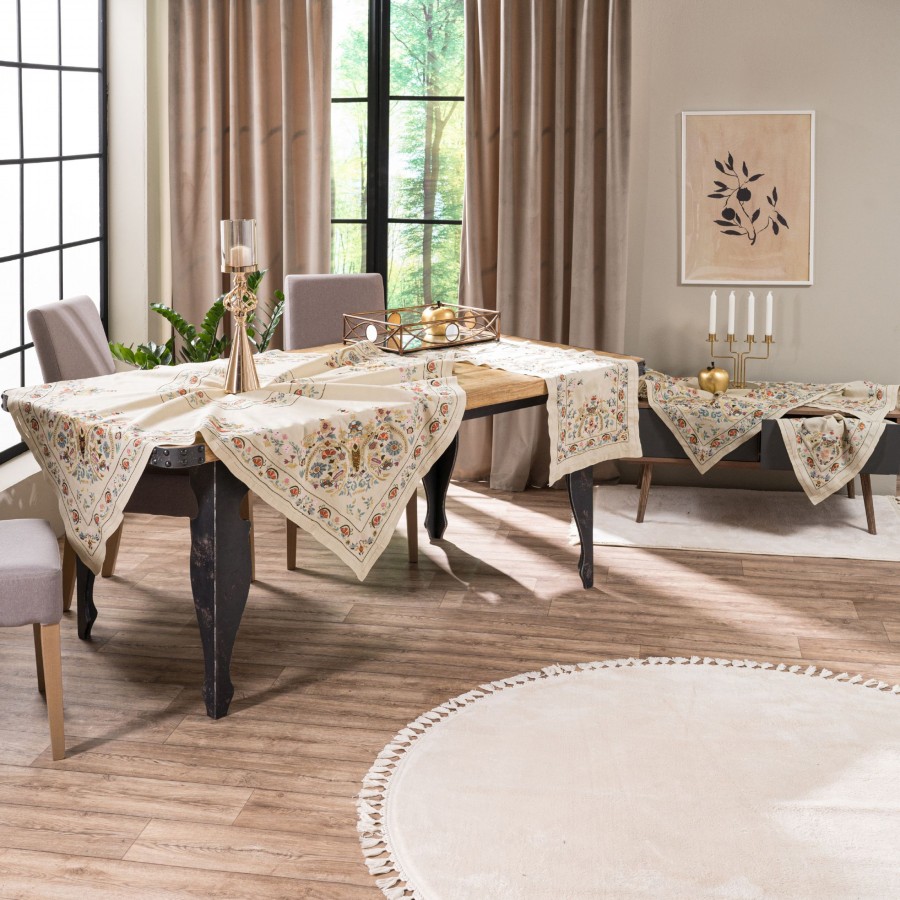 Χειροποίητο σετ 5 τεμαχίων NX516 - Σετ 5 τεμαχίων (καρέ 90x90 cm/ τραβέρσα 40x160 cm/ τραπεζοκαρέ 135x135cm/ πετσετάκια 2 τεμ 40x40 cm) quantity