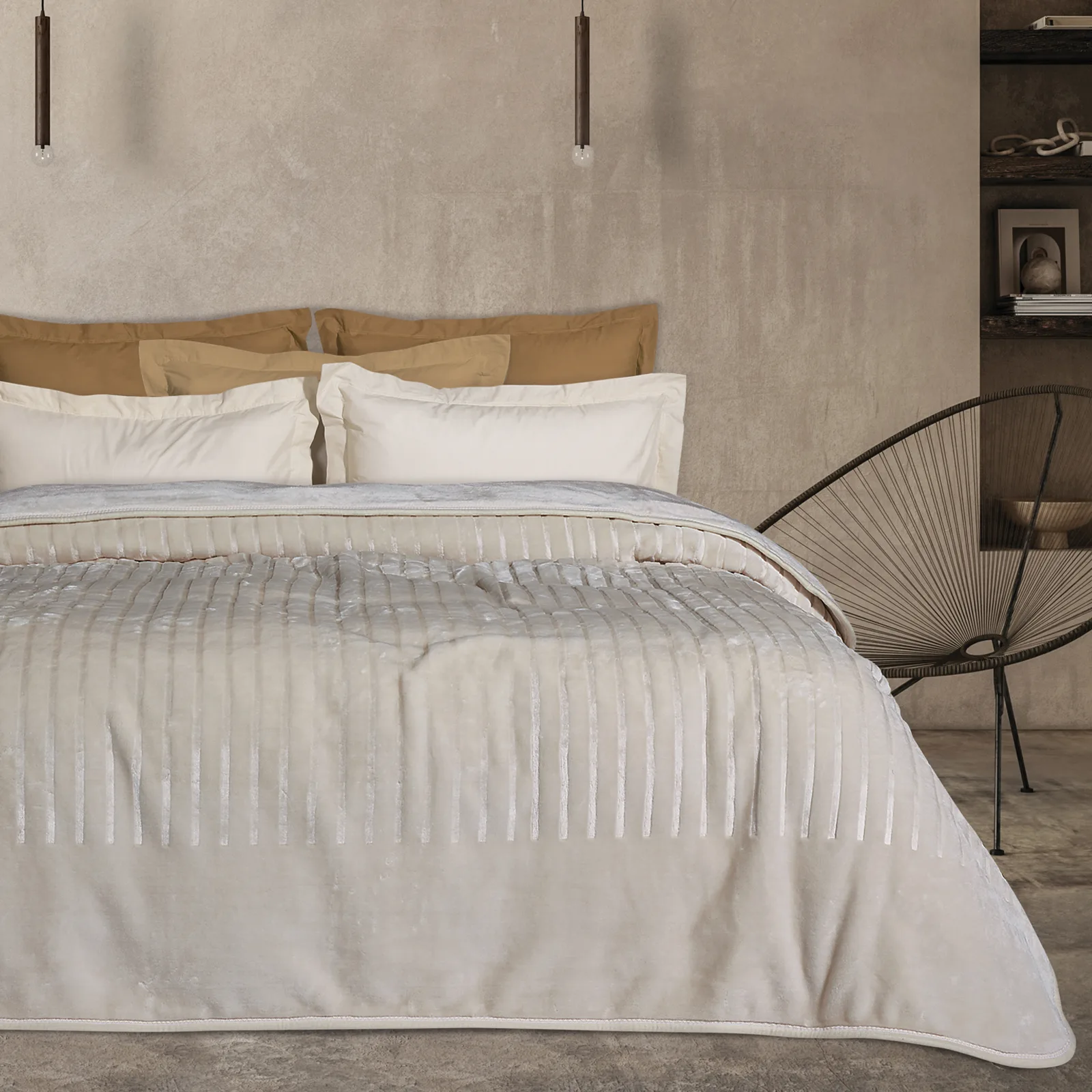 Κουβέρτα Velour μονόχρωμη με ανάγλυφες ρίγες. Είναι από 100% pol. βάρους 700gr/m², υποαλλεργική, ιδιαίτερα απαλή στην υφή και ανθεκτική στη χρήση. Διατίθεται σε διάσταση 220X240εκ. Das home…makes your house a home!