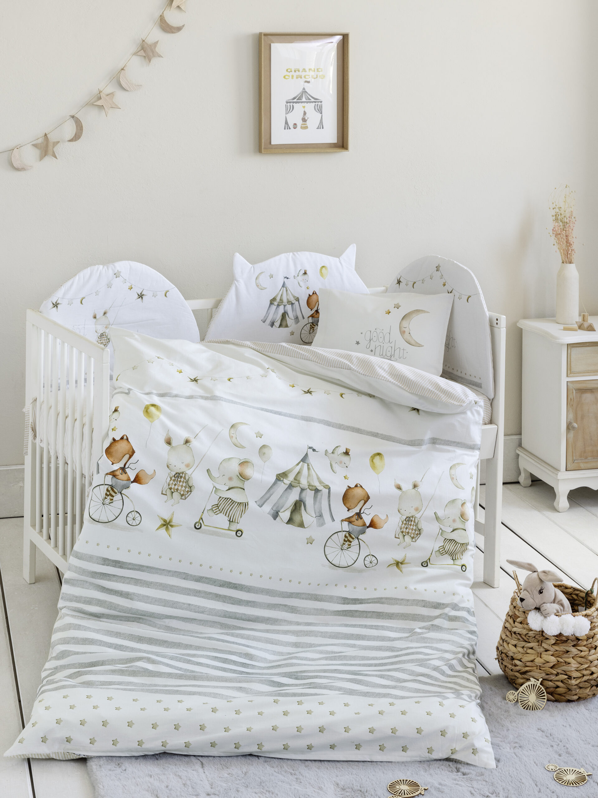 Wishlist Please, enable Wishlist.Η συσκευασία περιέχει: Nima Bebe Κουβερλί Κούνιας – Baby Circus Μπεζ, Γκρι 100% Cotton, 144 T.C.