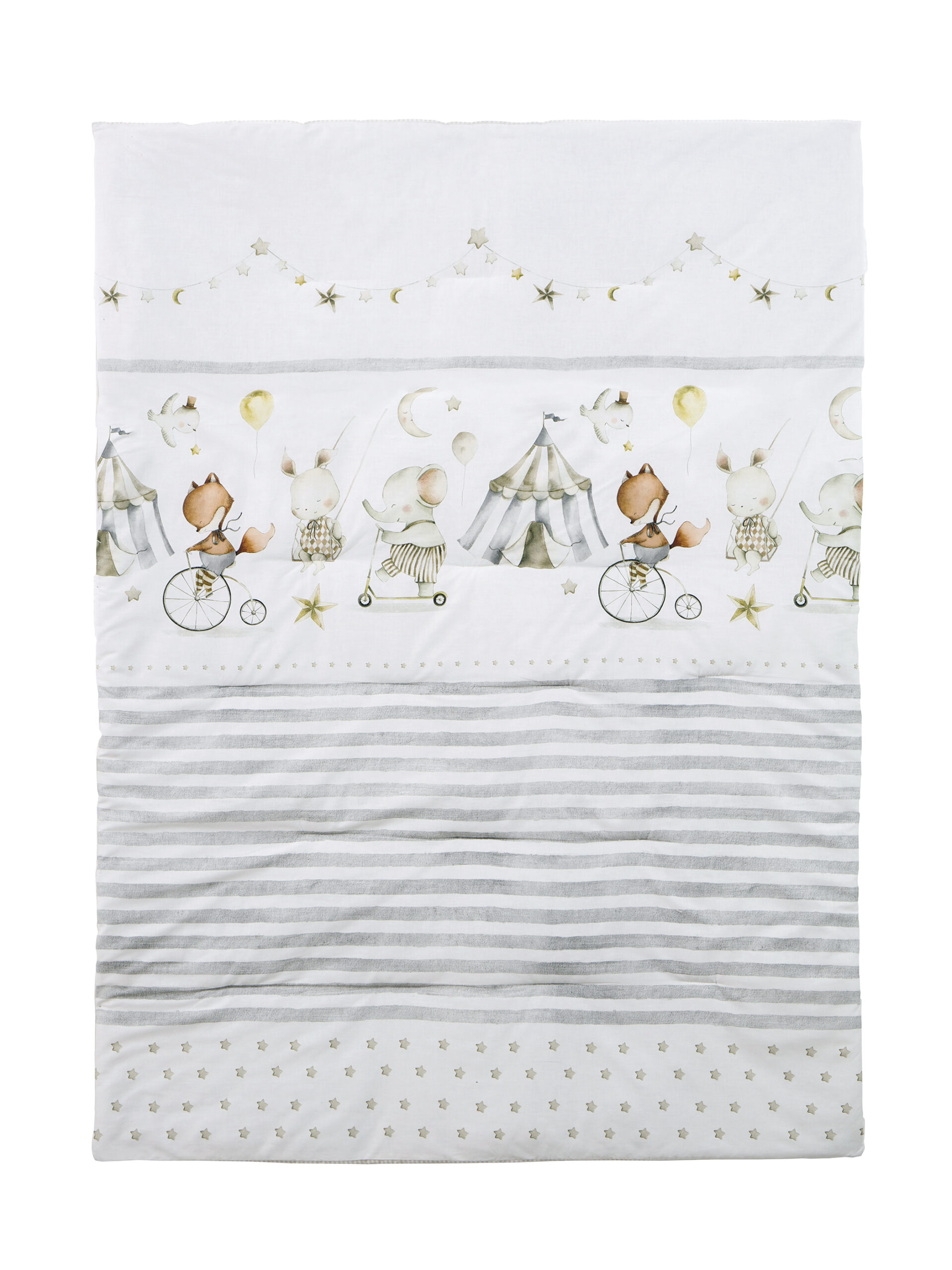 Η συσκευασία περιέχει: Nima Bebe Κουβερλί Κούνιας – Baby Circus Μπεζ, Γκρι 100% Cotton, 144 T.C.