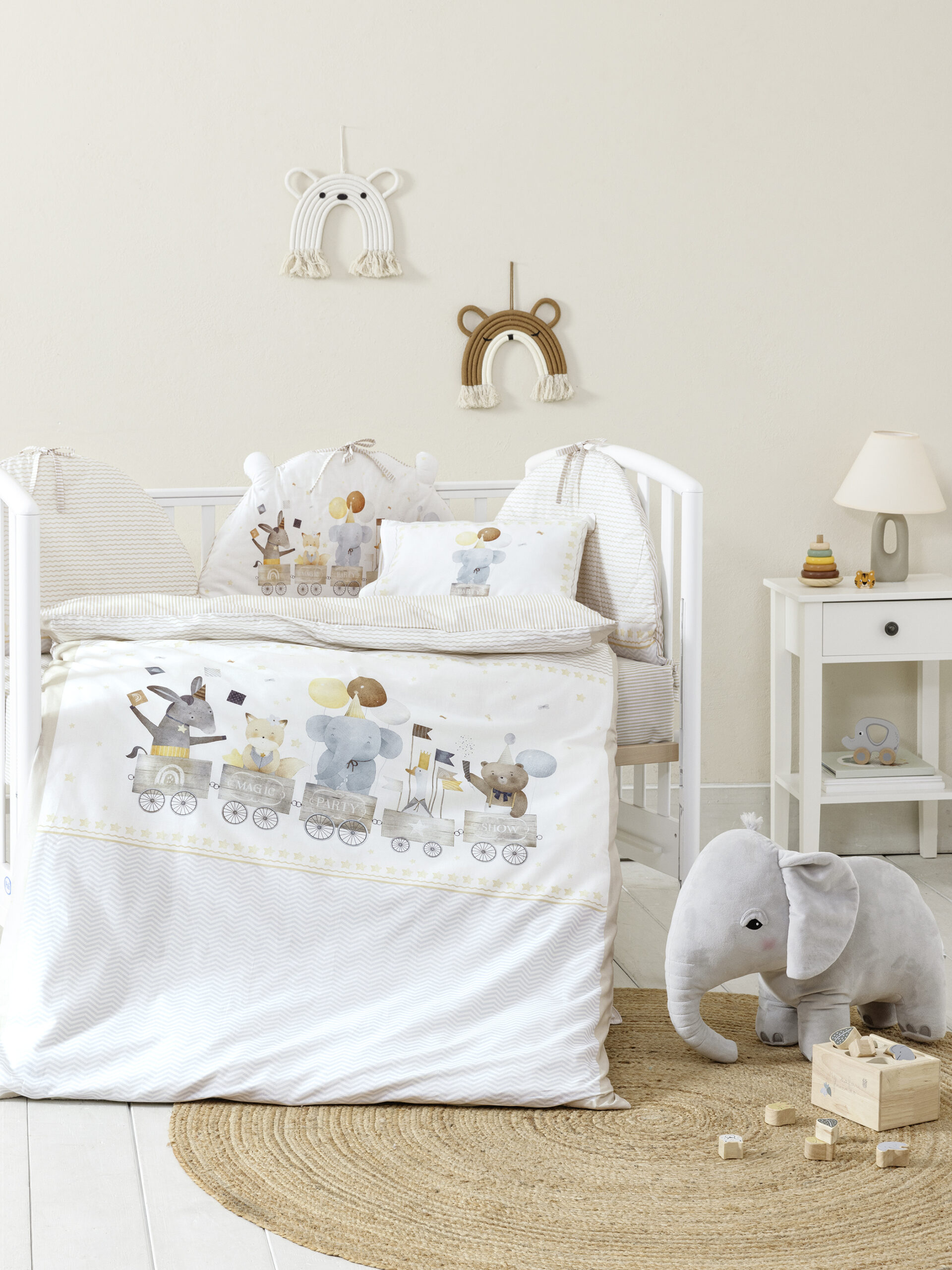Η συσκευασία περιέχει: Nima Bebe Κουβερλί Κούνιας – Magic Party Μπεζ 100% Cotton, 144 T.C.