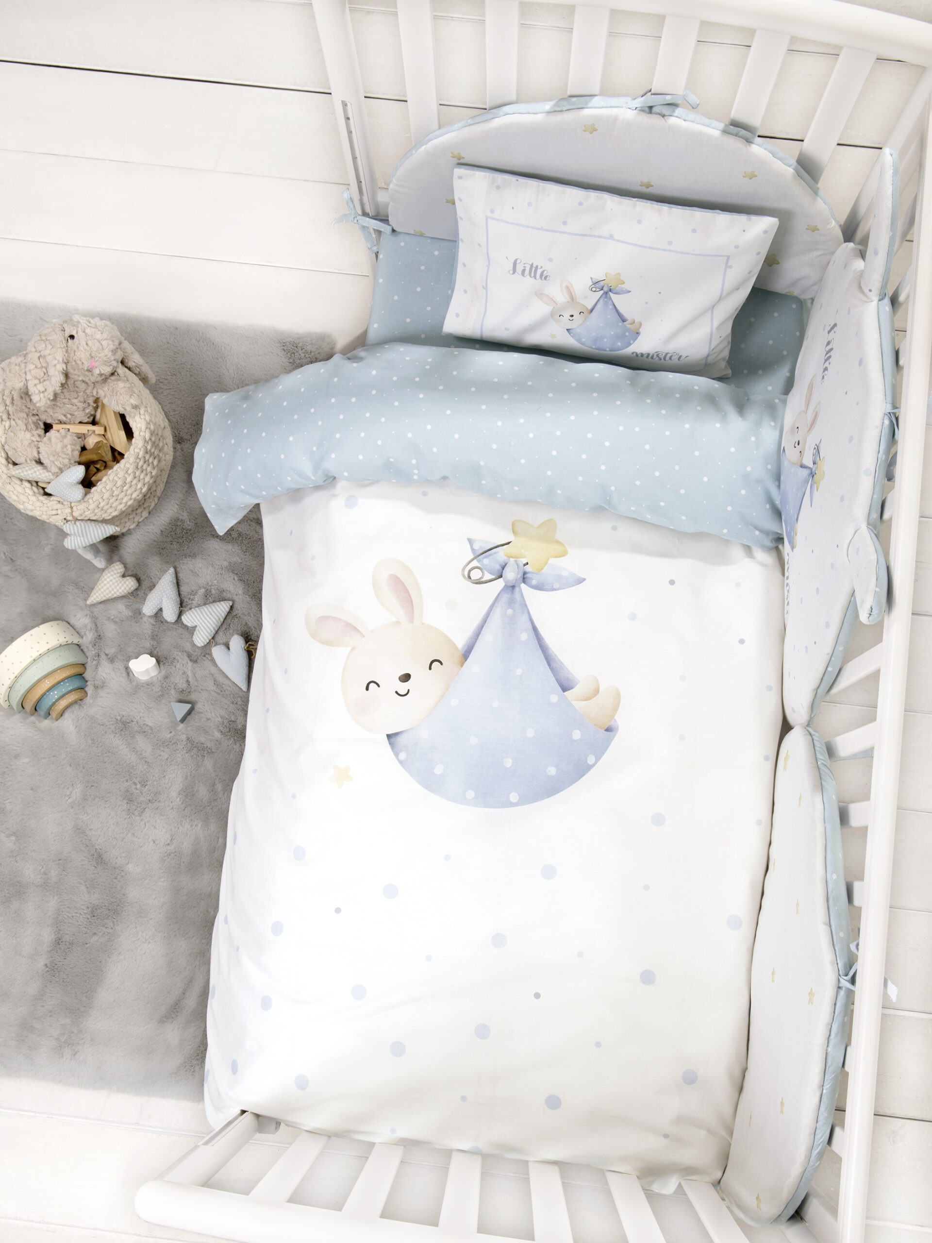 Wishlist Please, enable Wishlist.Η συσκευασία περιέχει: Nima Bebe Σετ Παπλωματοθήκη Κούνιας – Little Mister Λευκό, Γαλάζιο 100% Cotton, 144 T.C.