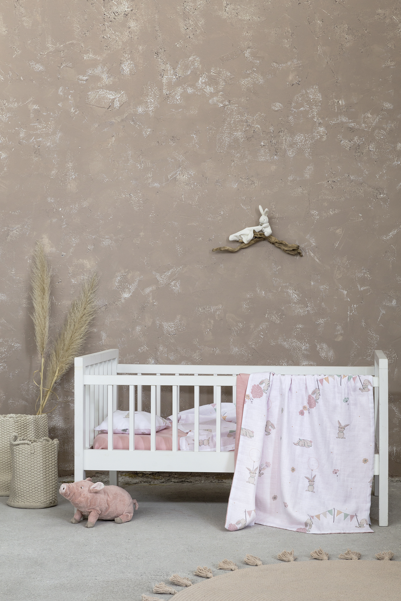 Η συσκευασία περιέχει: Nima Bebe Σετ Σεντόνια Κούνιας – Bunny Love Ροζ, Λευκο 100% Cotton
