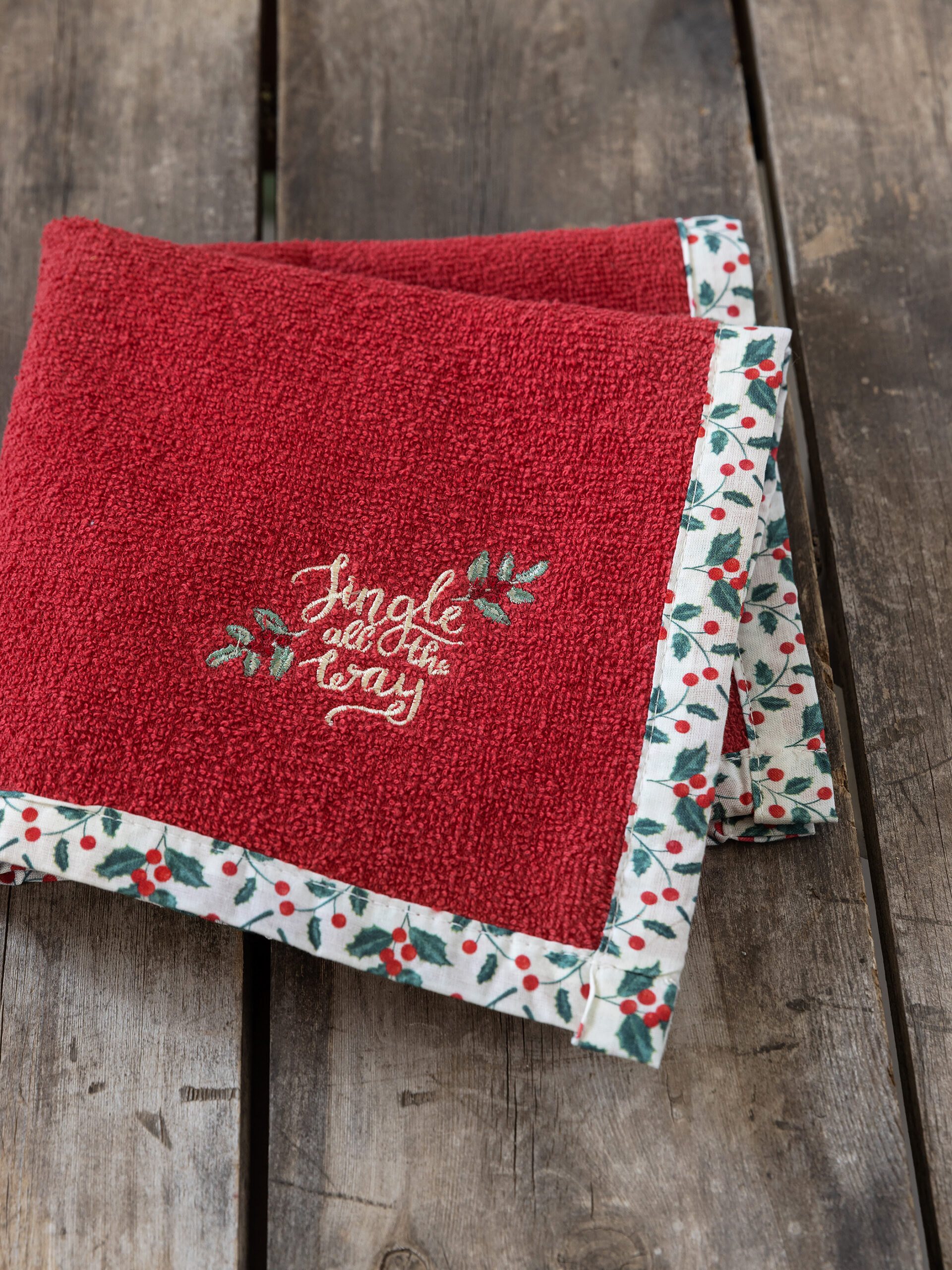 Nima Home Πετσέτα Κουζίνας 40×40 – Mistletoe Λευκό, Κόκκινο, Πράσινο
