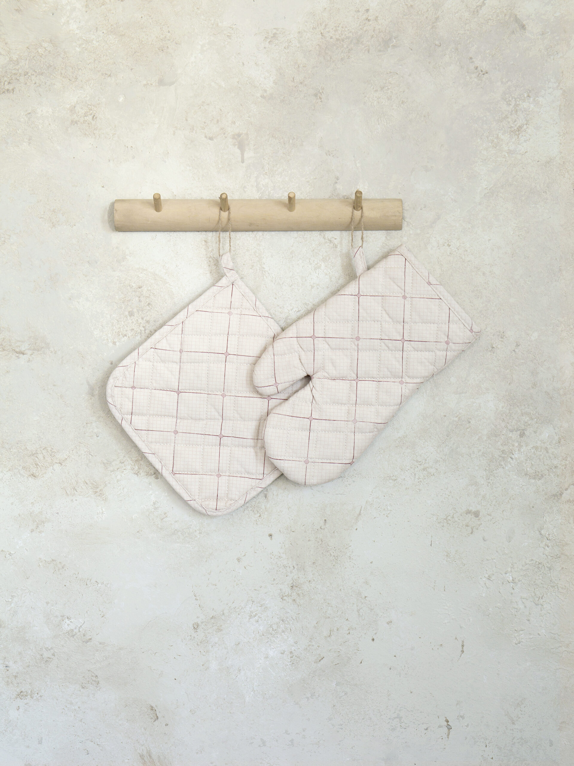 Η συσκευασία περιέχει: Nima Home Σετ Κουζίνας (Γάντι + Πιάστρα) – Selina Ροζ 100% Cotton
