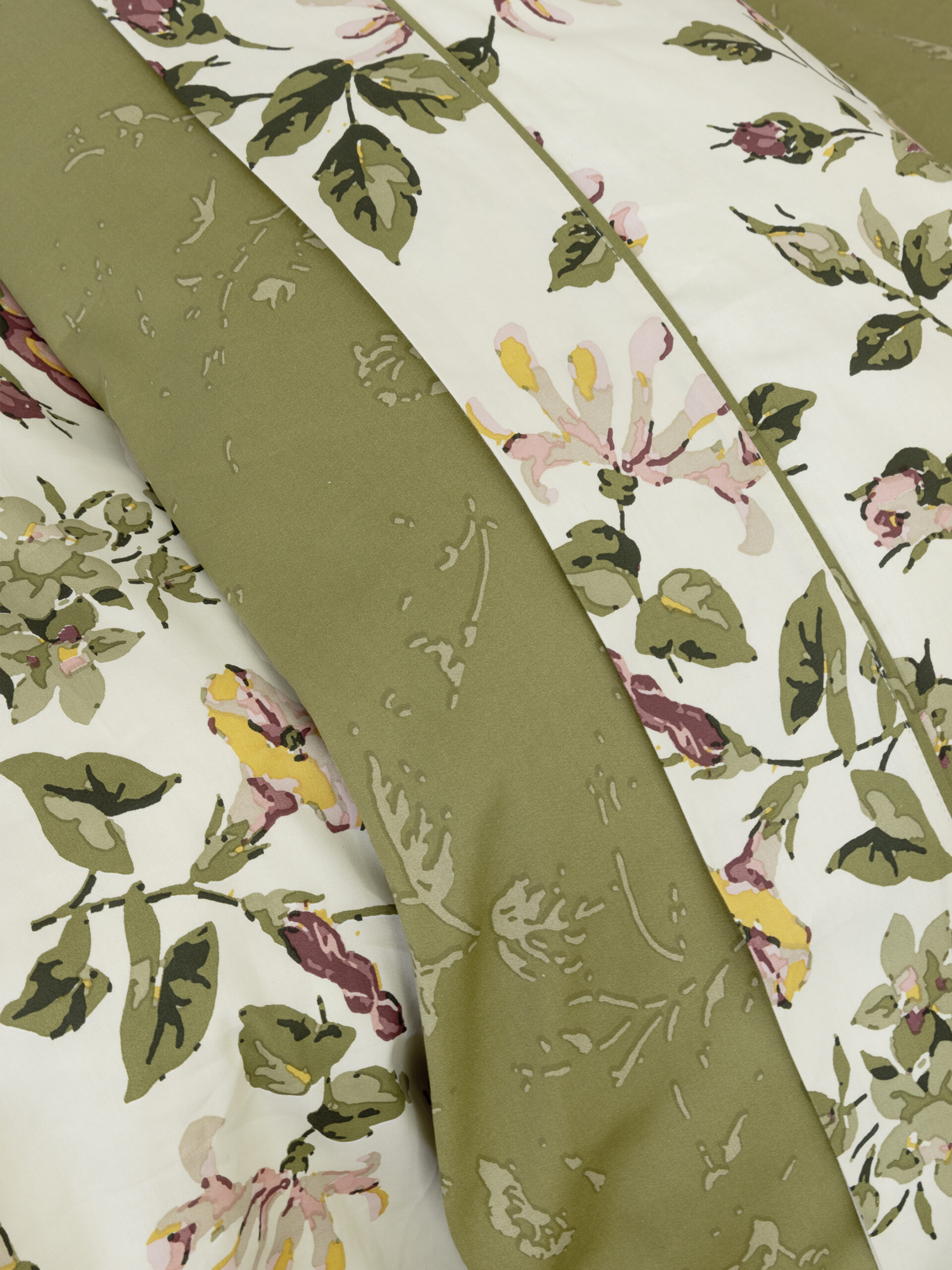 Η συσκευασία περιέχει: Nima Home Σετ Παπλωματοθήκη Υπέρδιπλη – Moments Πράσινο, Μπορντώ, Εκρού 100% Satin Cotton, 220 T.C.