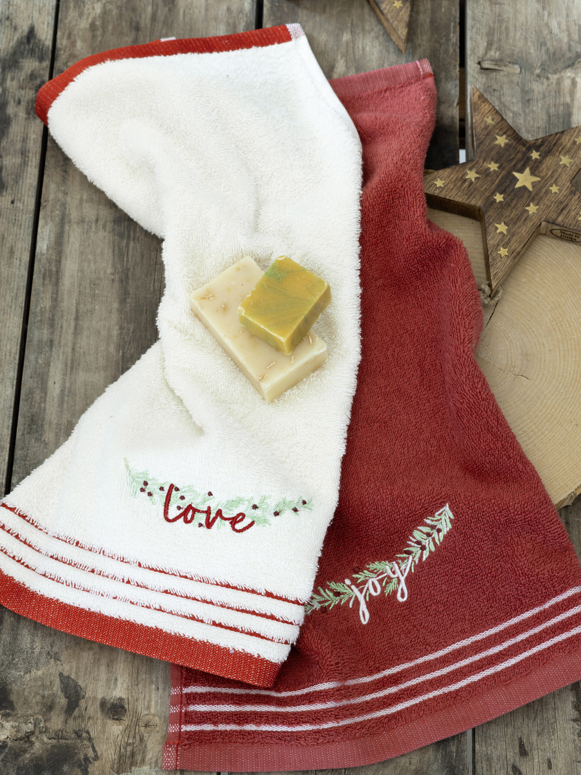 Η συσκευασία περιέχει: Nima Home Σετ Πετσέτες (2 x 30×50) – Joyful Κόκκινο, Πράσινο 100% Cotton