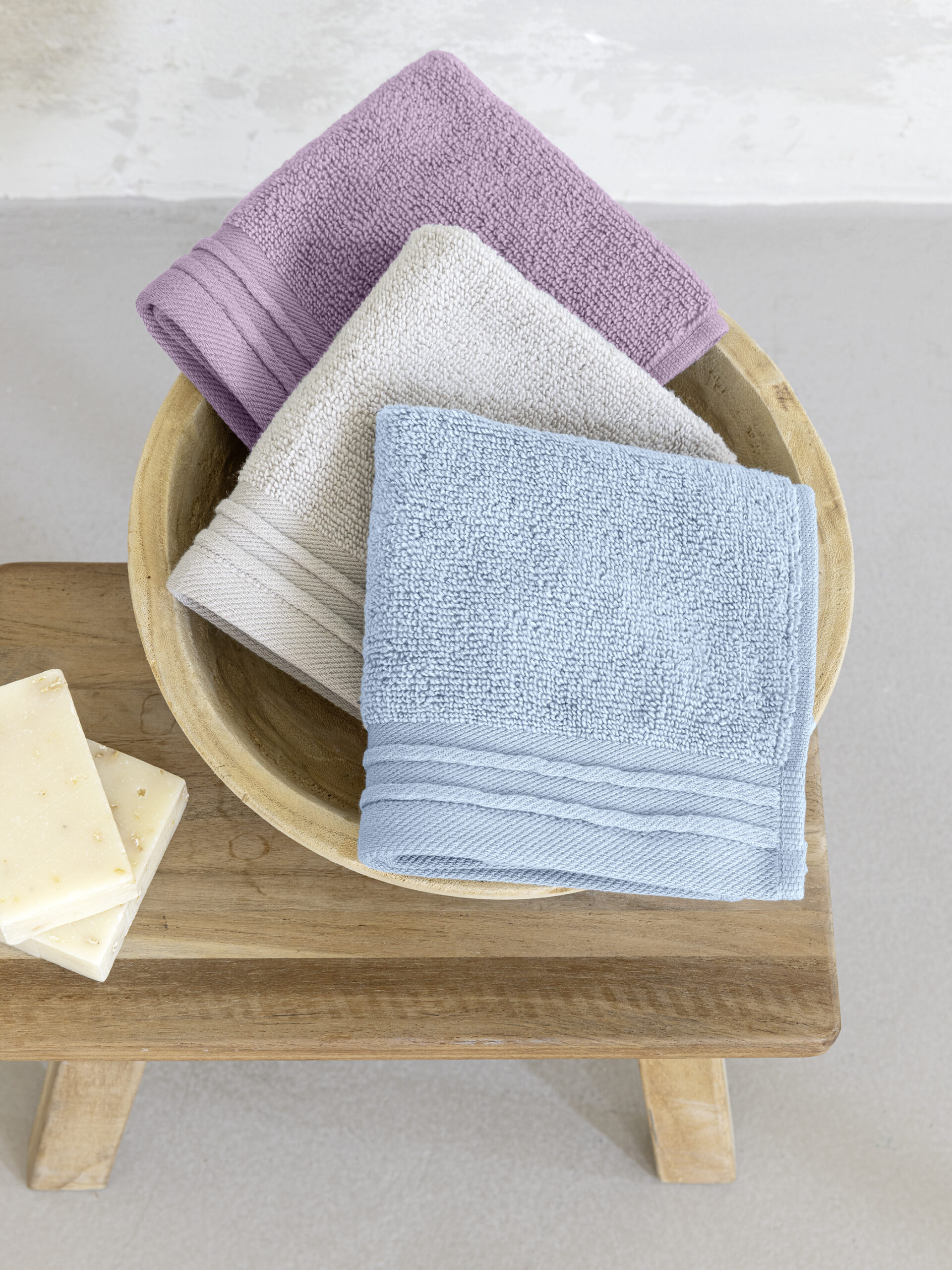 Η συσκευασία περιέχει: Nima Home Σετ Πετσέτες (3 x 30×30) Breezy Light Μπεζ, Μωβ, Γαλάζιο 100% Zero Twist Cotton, 500 gsm