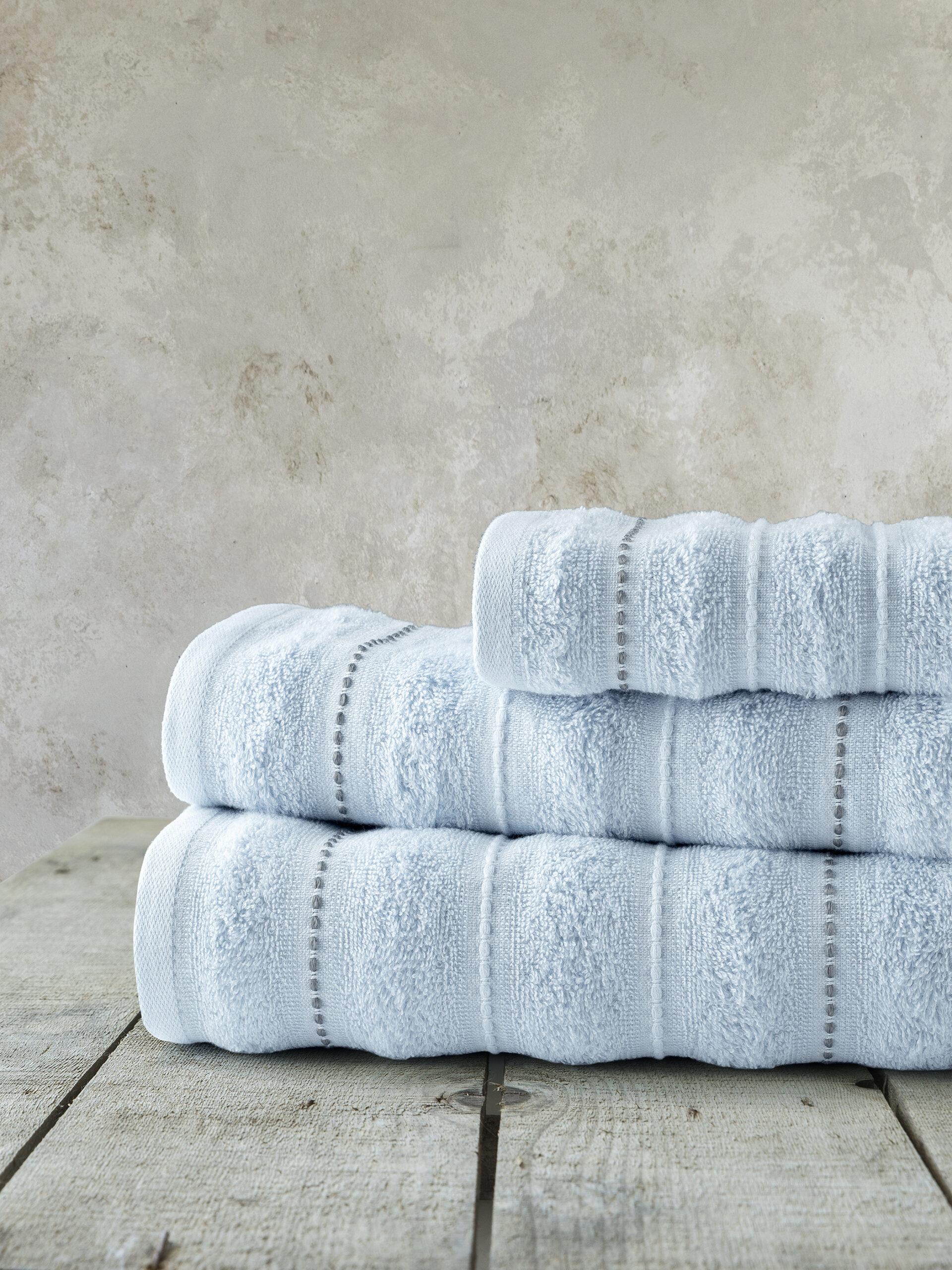 Η συσκευασία περιέχει: Nima Home Σετ Πετσέτες (30×50 + 50×90 + 70×140) – Aura Light Blue Γαλάζιο 100% Cotton, 450 gsm
