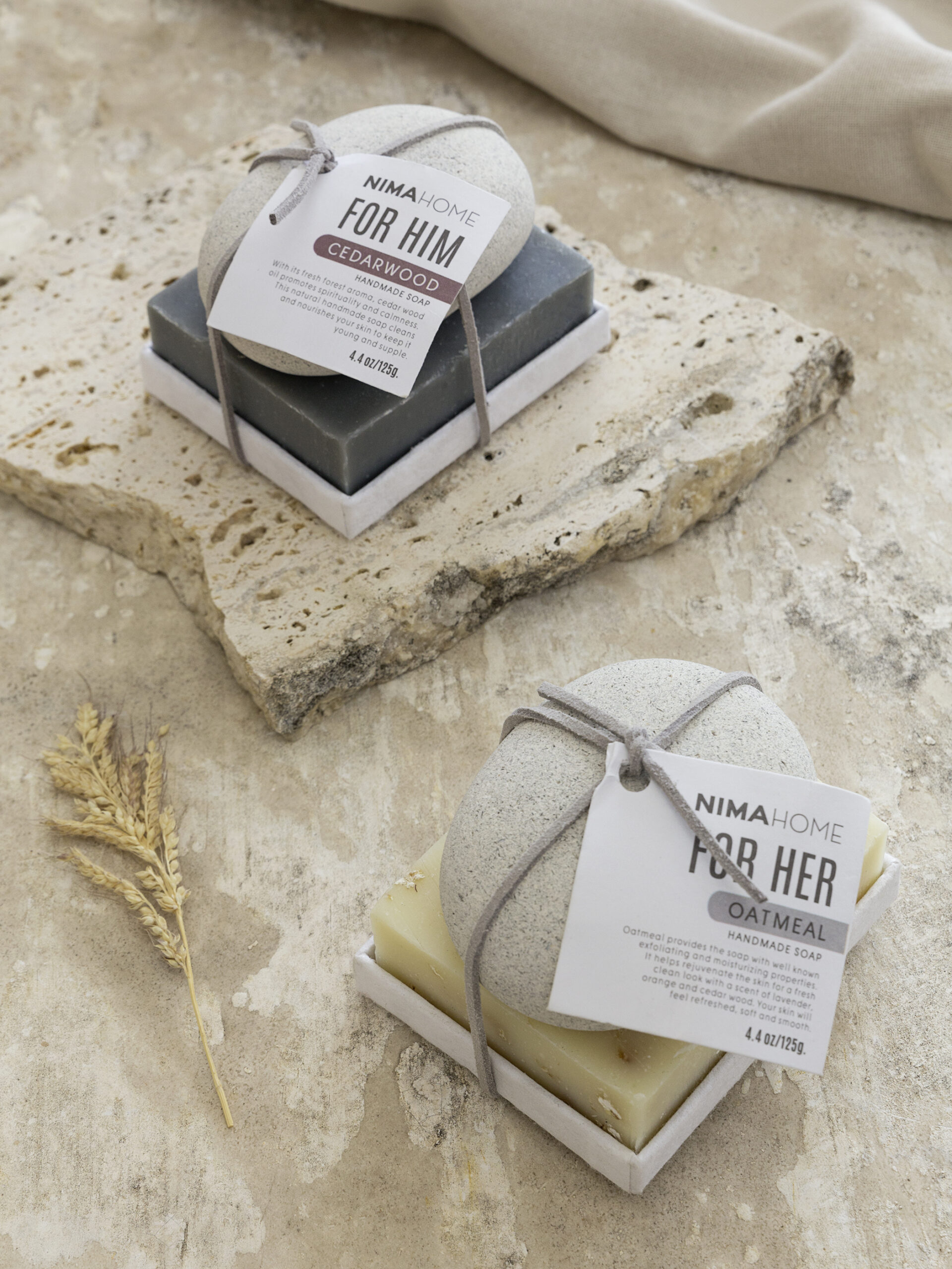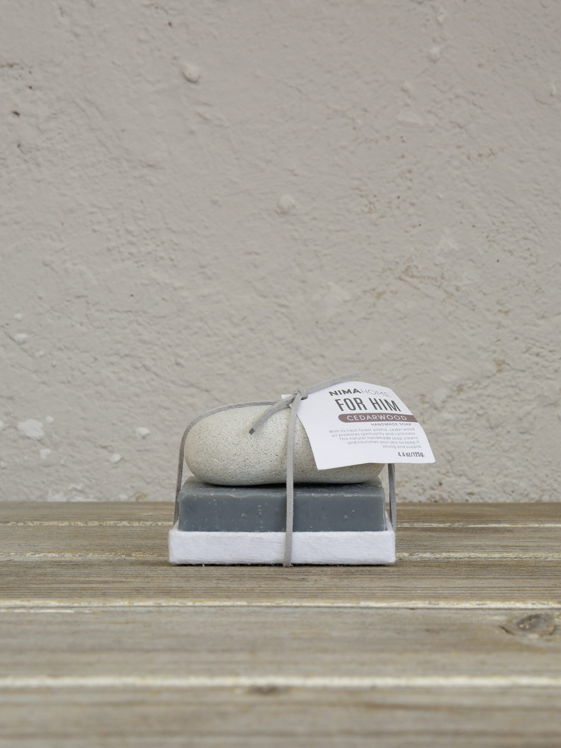 Η συσκευασία περιέχει: Nima Home Σετ Σαπούνι χειροποίητο 125g + Πέτρα απολέπισης – Cedarwood