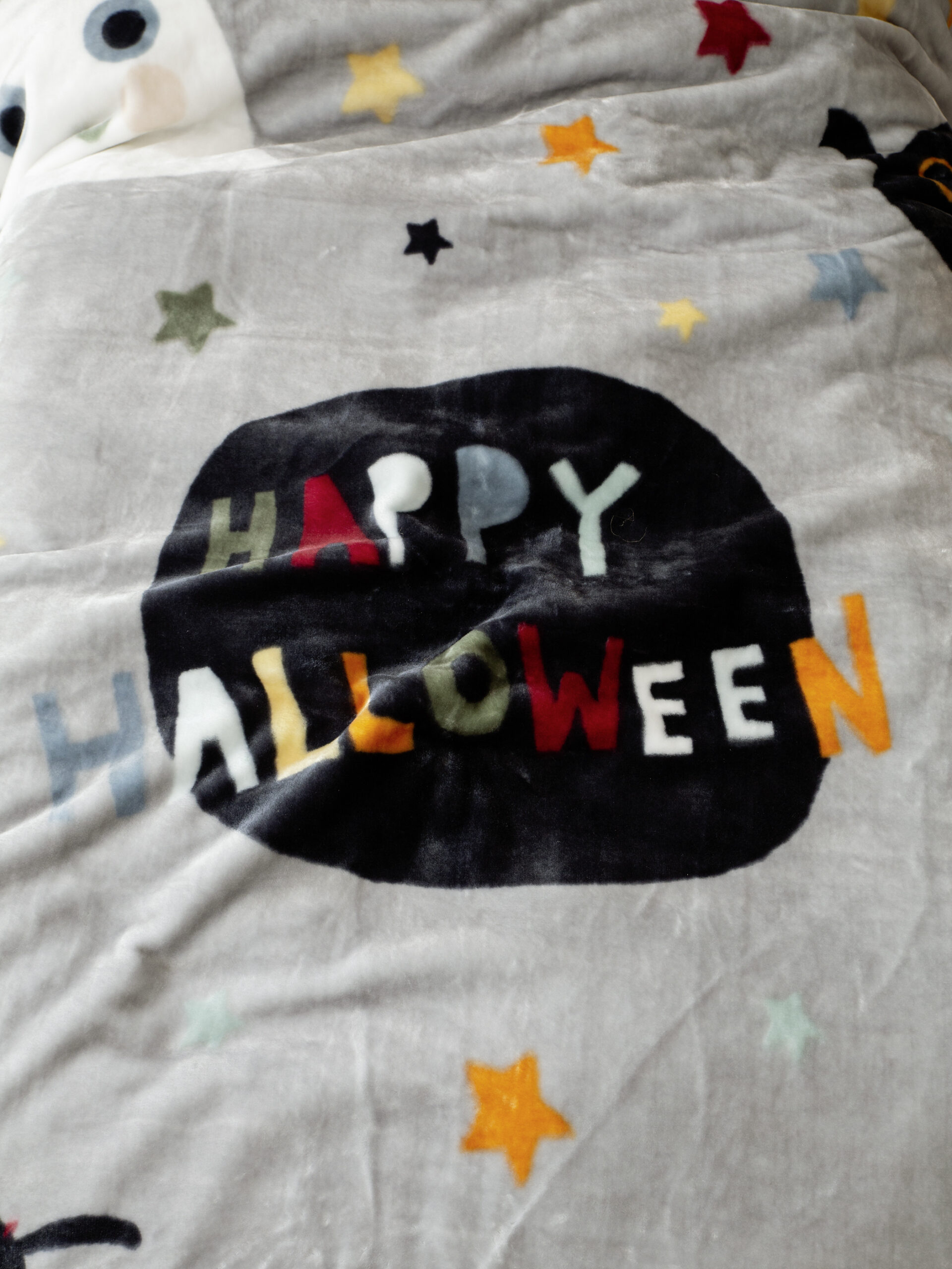 Η συσκευασία περιέχει: Nima Kids Κουβέρτα Βελουτέ Μονή 160×220 – Happy Halloween Γκρι Velour, 100% Polyester