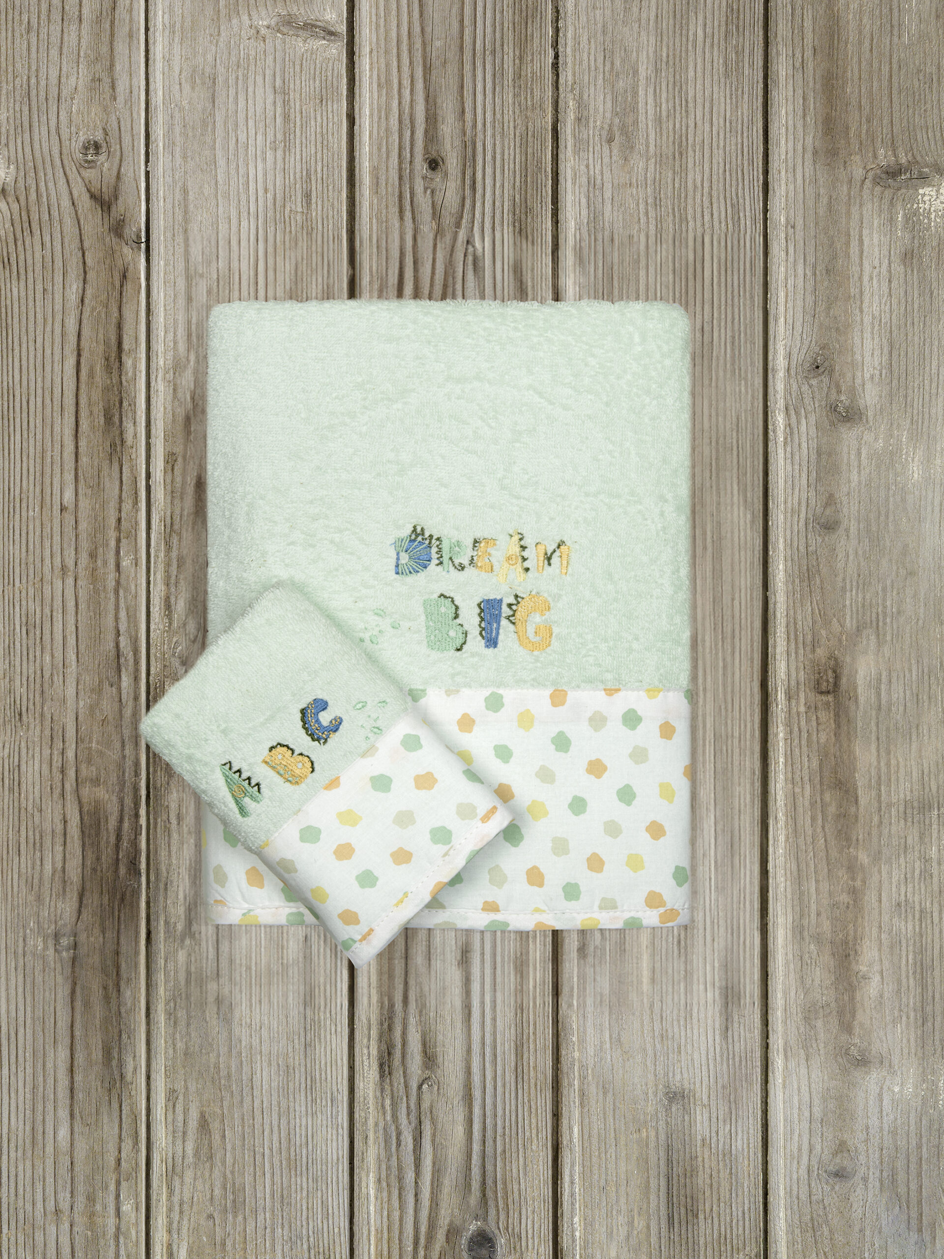 Η συσκευασία περιέχει: Nima Kids Σετ Πετσέτες (30×50 + 70×140) – Dream Big Τιρκουάζ 100% Cotton, 400 gsm