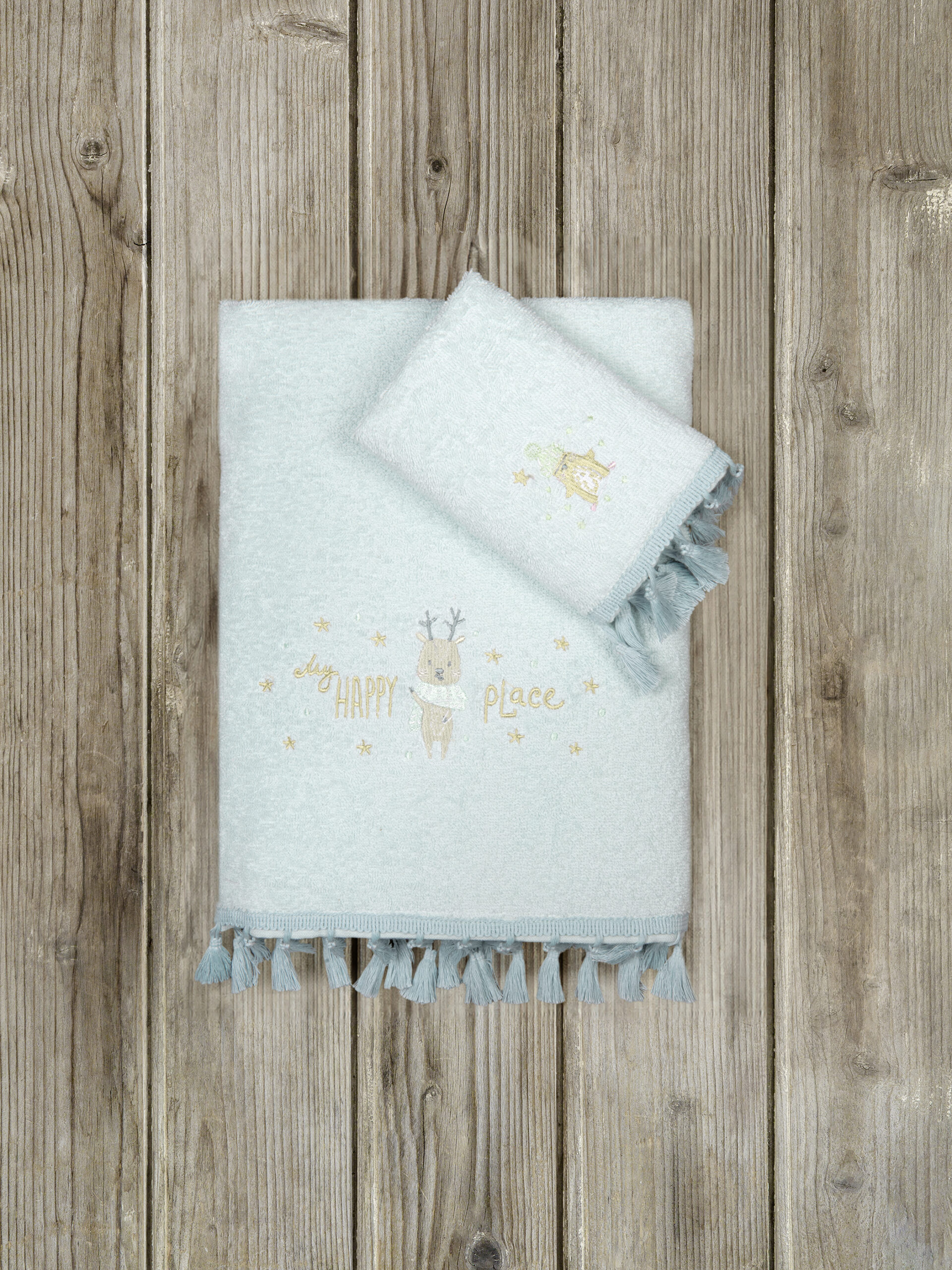Η συσκευασία περιέχει: Nima Kids Σετ Πετσέτες (30×50 + 70×140) – Happy Place Γαλάζιο 100% Cotton, 400 gsm
