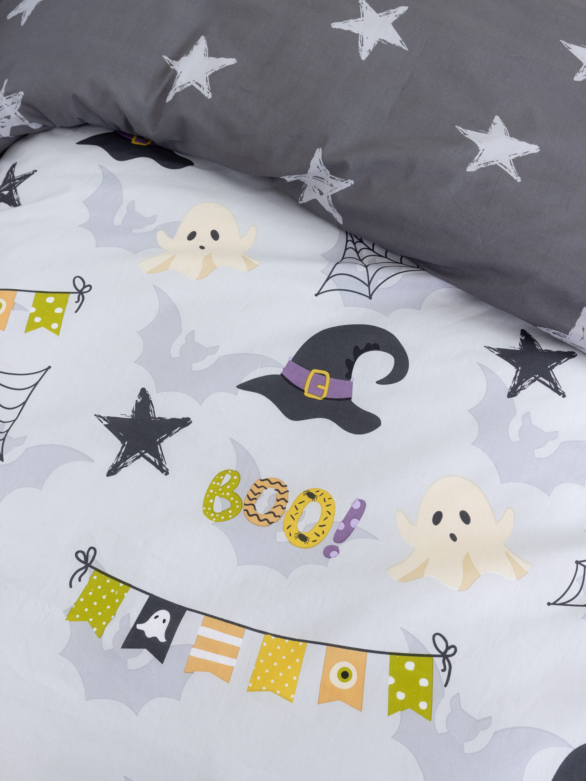 Η συσκευασία περιέχει: Nima Kids Σετ Σεντόνια Μονά – Boo! Γκρι 100% Cotton, 144 T.C.