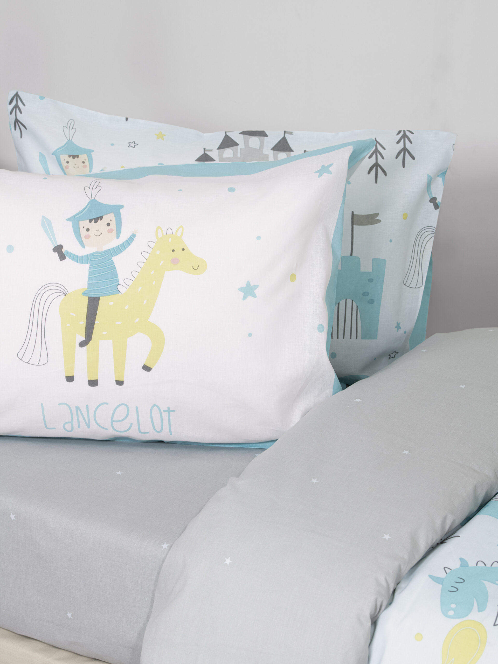 Η συσκευασία περιέχει: Nima Kids Σετ Σεντόνια Μονά – Lancelot Γαλάζιο, Γκρι 100% Cotton, 144 T.C.