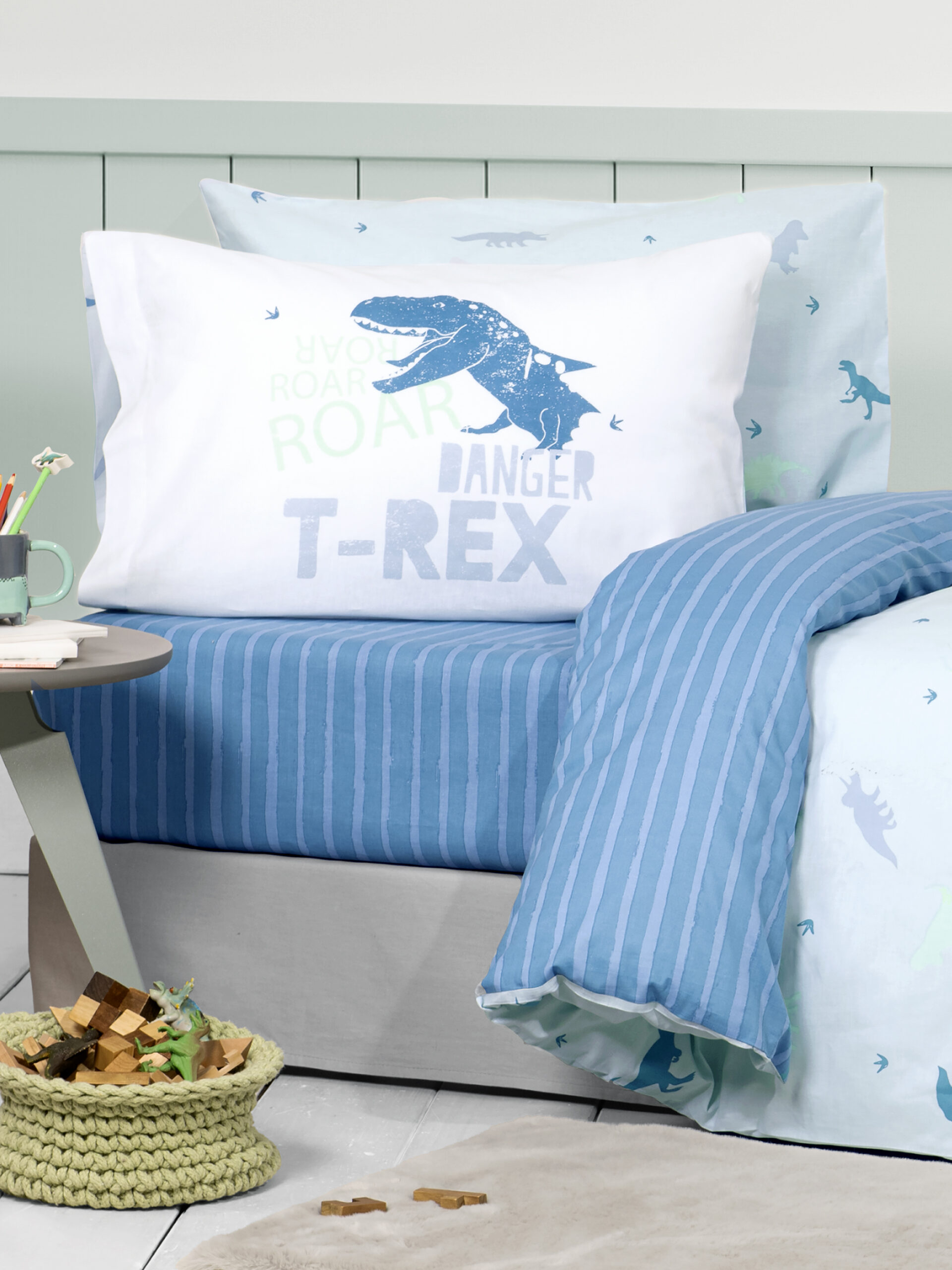 Nima Kids Σετ Σεντόνια Μονά με Λάστιχο – Roar Μπλε     (1 x 100×200+30  x 170×255   52×72) shopinhome shopinhome